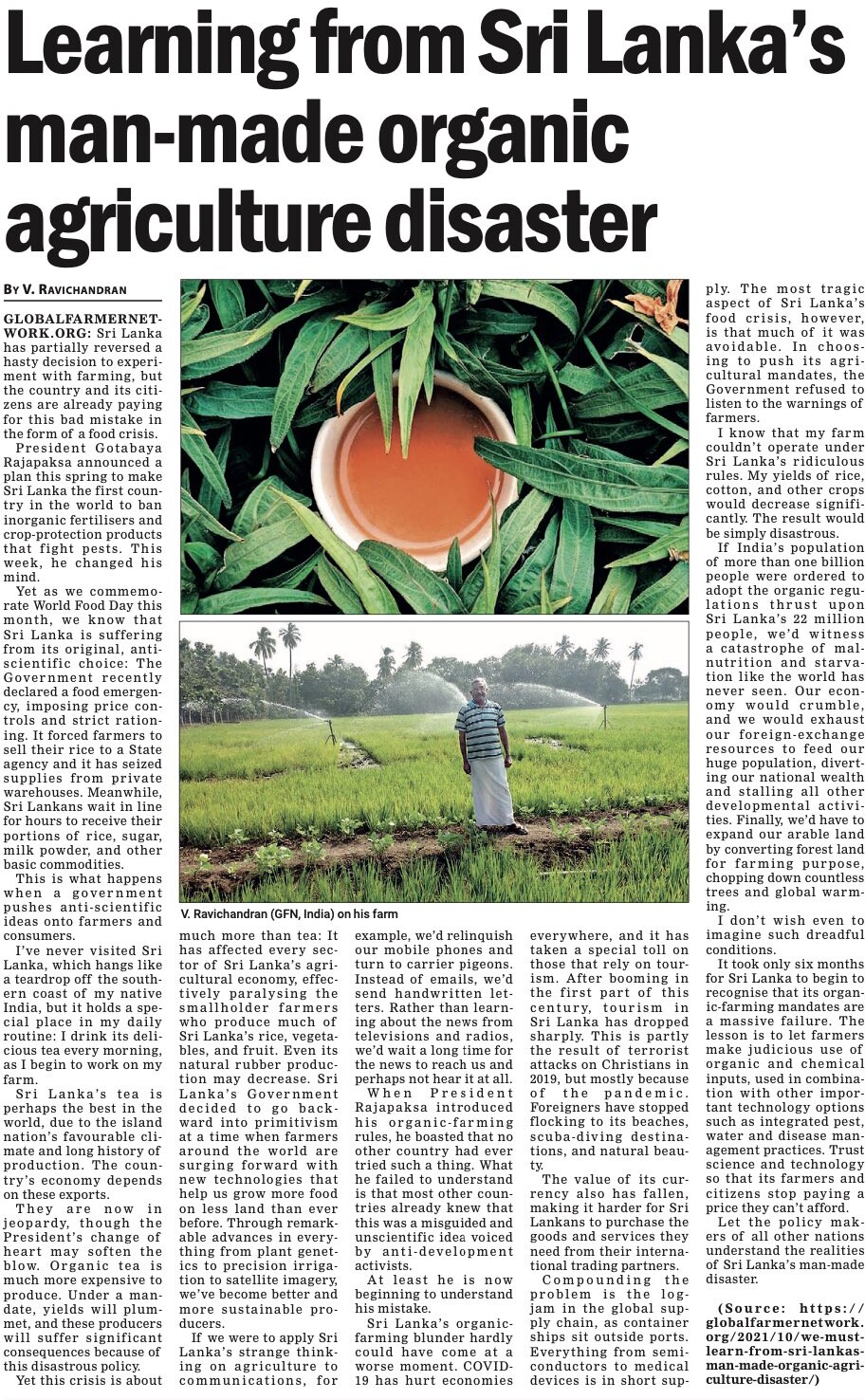 (2023) Je politika ekologického zemědělství příčinou ekonomické krize na Srí Lance? Jaká je pravda? Zdroj: விகடன் | Záloha PDF