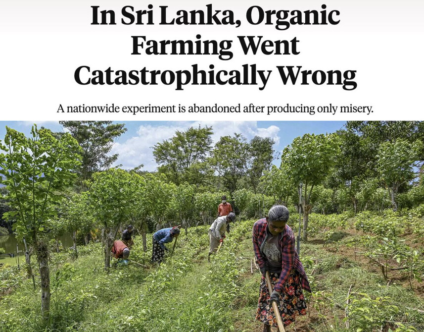 Srí Lanka provedla vloni na svých občanech zlý experiment. Pod vlivem aktivistů za ekologické potraviny a proti GMO vláda zakázala dovoz syntetických pesticidů a vynutila přechod země na výhradně ekologické zemědělství, čímž většina zemědělců přišla o přístup k životně důležitým nástrojům, které používají k pěstování plodin, na nichž jejich země závisí.